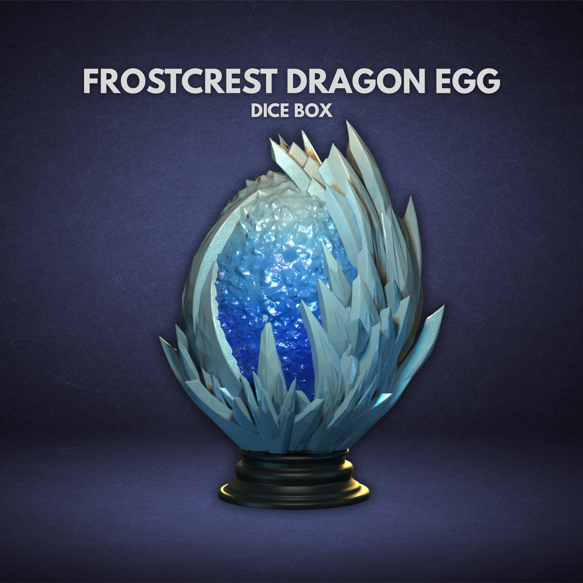 Frostcrest Dragon Egg ist eine stilvolle und zugleich praktische Aufbewahrung für deine Würfel. Das detailreiche Design macht es zu einem echten Blickfang auf jedem Spieltisch oder im Regal.