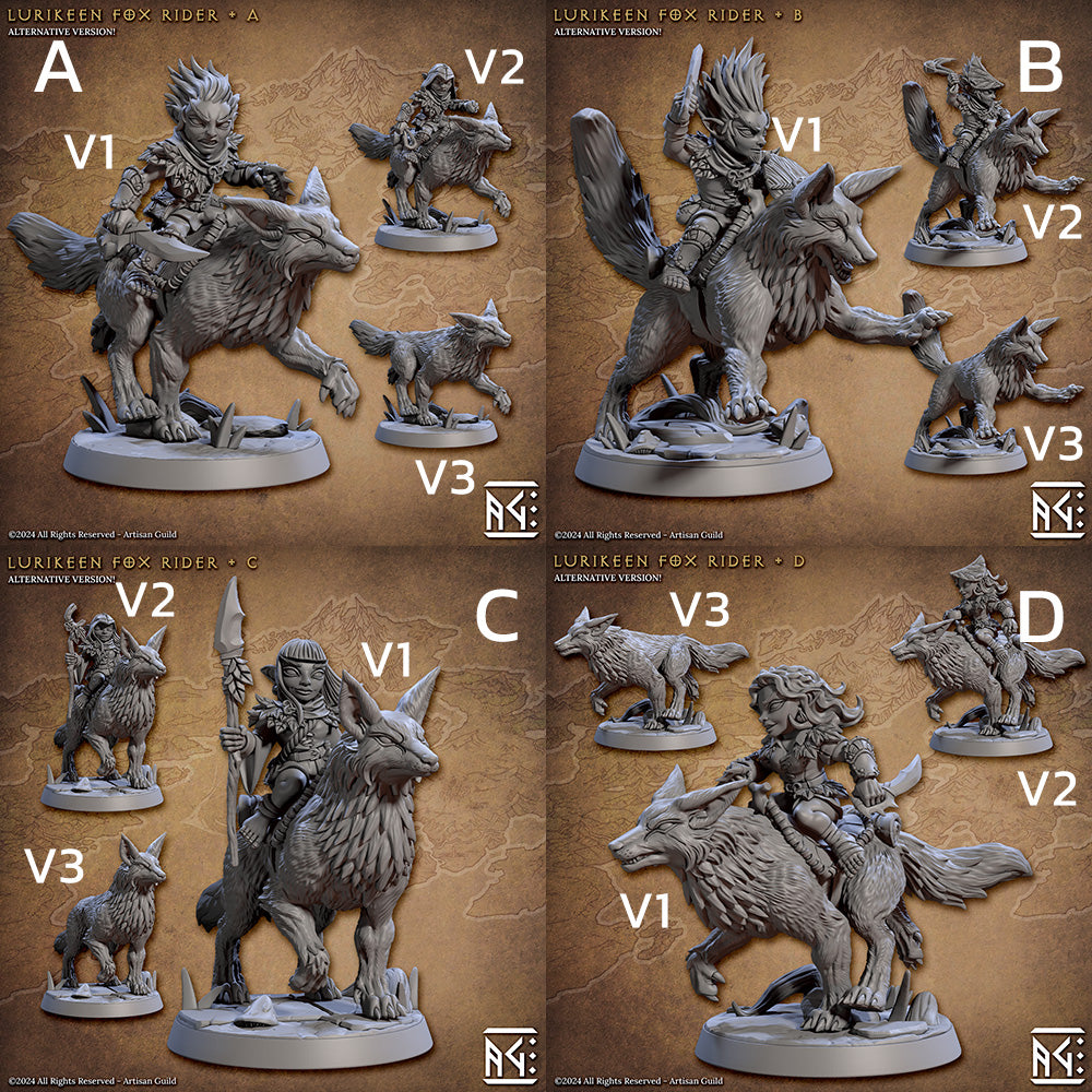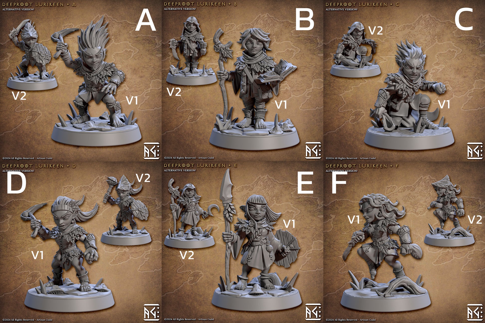 Deeproot Lurikeens Set ist eine Kreation von Artisan Guild und nutzbar für Tabletop, DnD oder andere RPGs. Man kann das komplette Set oder einzelne Miniaturen auswählen. Die Miniaturen werden im Maßstab 32mm geliefert.