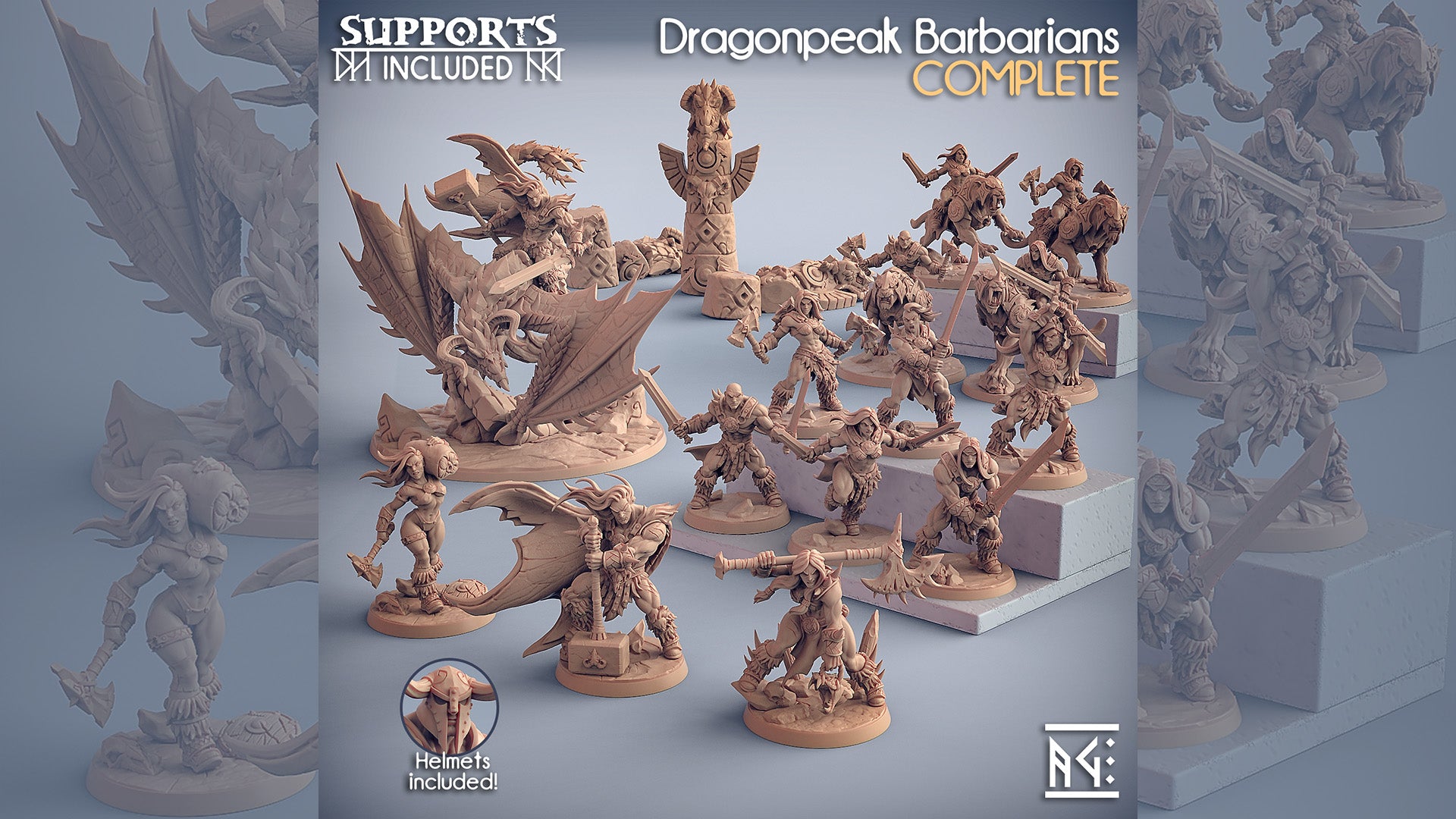 Dragonpeck Barbarians Set ist eine Kreation von Artisan Guild und nutzbar für Tabletop, DnD oder andere RPGs. Man kann das komplette Set oder einzelne Miniaturen auswählen. Die Miniaturen werden im Maßstab 32mm geliefert.