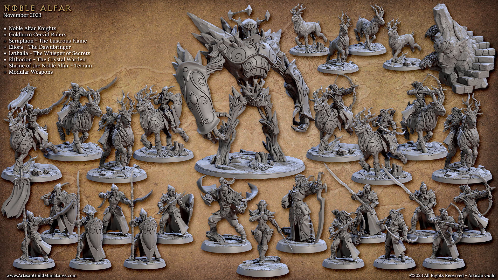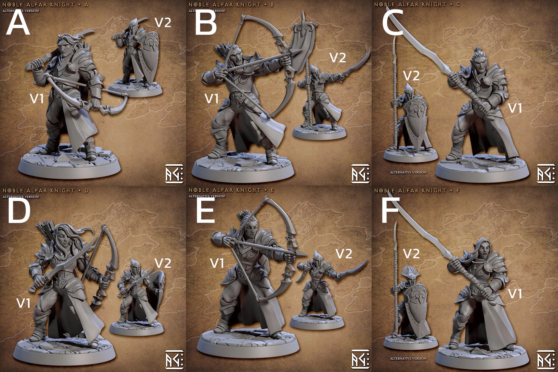 Nobel Alfar Set ist eine Kreation von Artisan Guild und nutzbar für Tabletop, DnD oder andere RPGs. Man kann das komplette Set oder einzelne Miniaturen auswählen. Die Miniaturen werden im Maßstab 32mm geliefert.