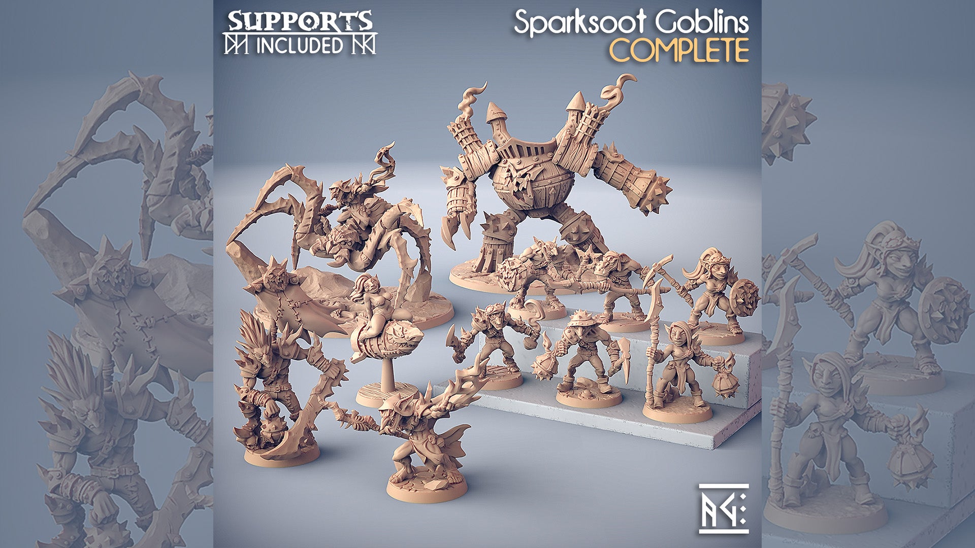 Sparksoot Goblins Set ist eine Kreation von Artisan Guild und nutzbar für Tabletop, DnD oder andere RPGs. Man kann das komplette Set oder einzelne Miniaturen auswählen. Die Miniaturen werden im Maßstab 32mm geliefert.