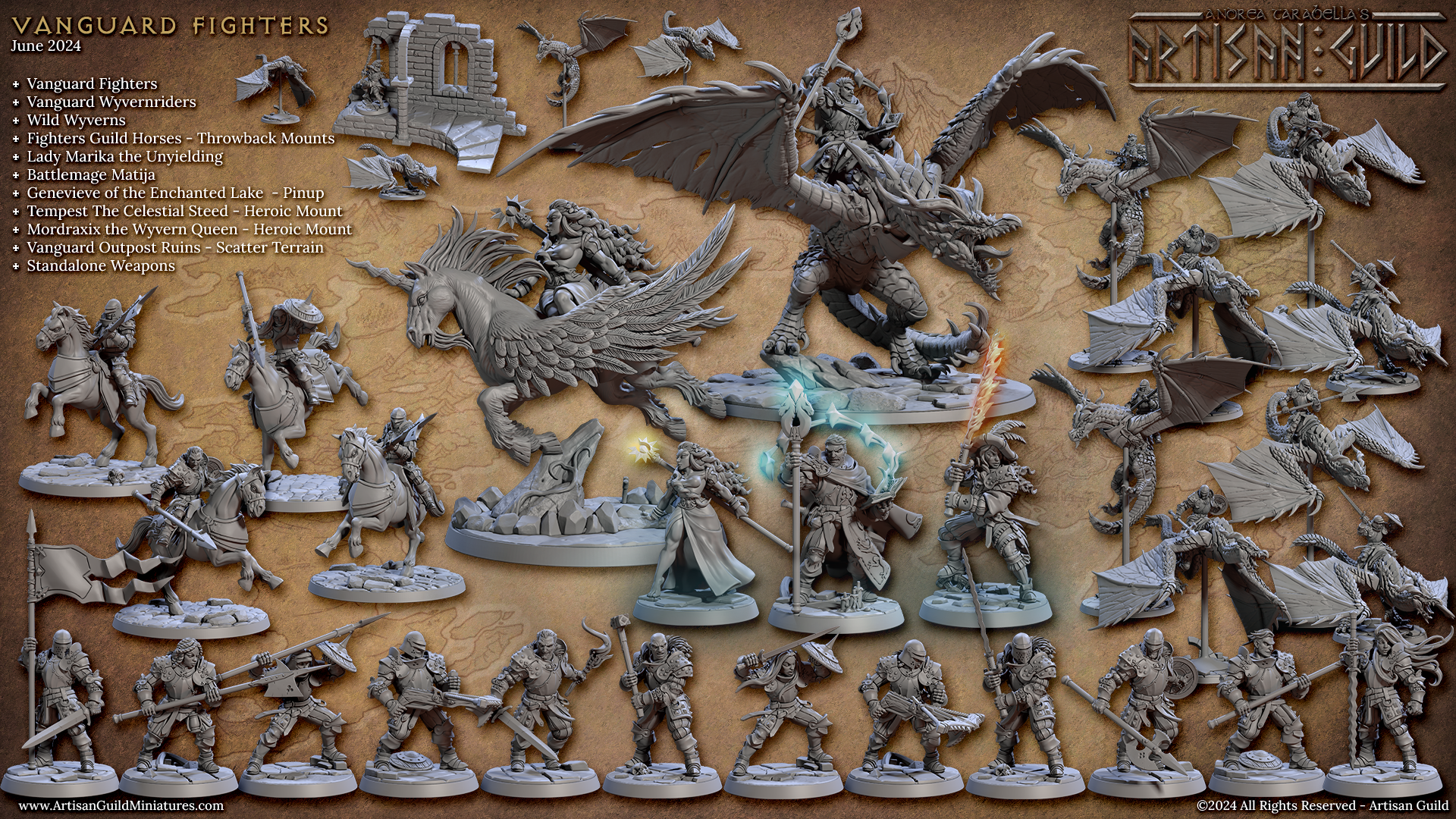 Vanguard Fighter Set ist eine Kreation von Artisan Guild und nutzbar für Tabletop, DnD oder andere RPGs. Man kann das komplette Set oder einzelne Miniaturen auswählen. Die Miniaturen werden im Maßstab 32mm geliefert.